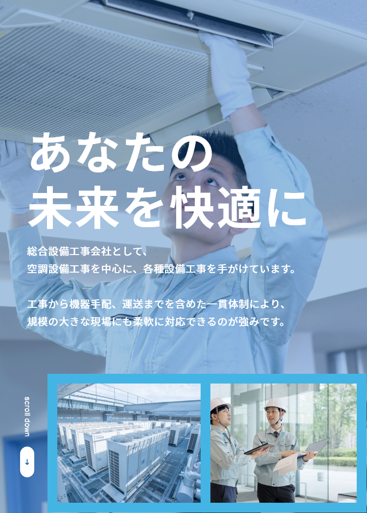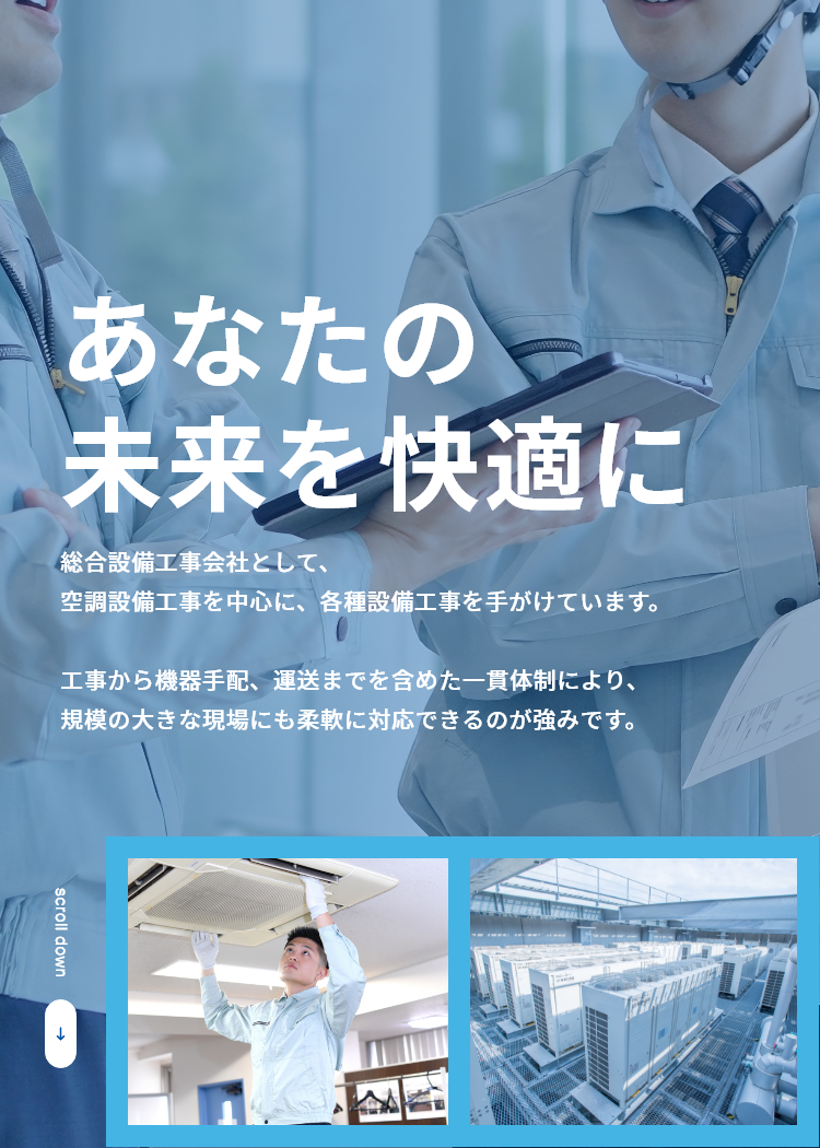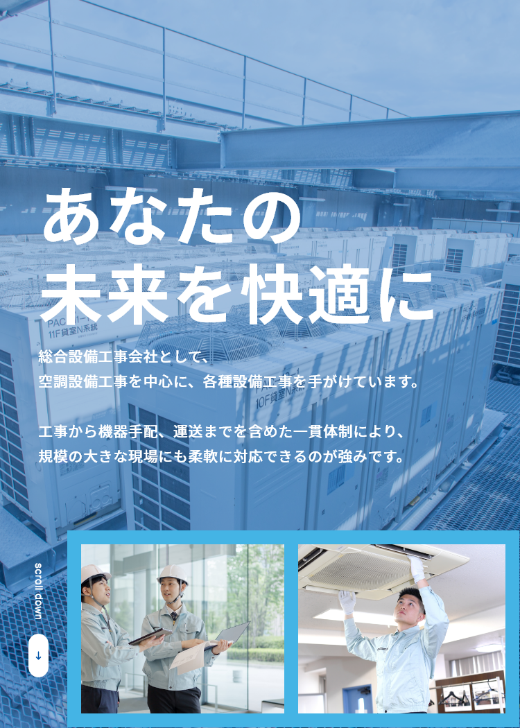 空調設備工事をはじめとする高度な設備技術を強みとし、機器特性や現場条件を踏まえた精度の高い施工を行っています。専門性を活かした提案力で、多様な設備ニーズに対応します。
